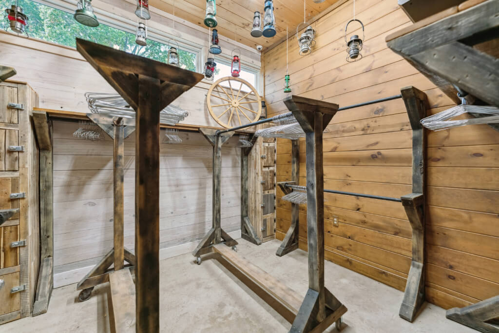 Once used for the farm’s tack rooms, feed storage, trophy displays, and vet and grooming bays, this area has been thoughtfully reimagined to provide comfort, convenience, and a little extra fun on your way to the heart of the celebration.