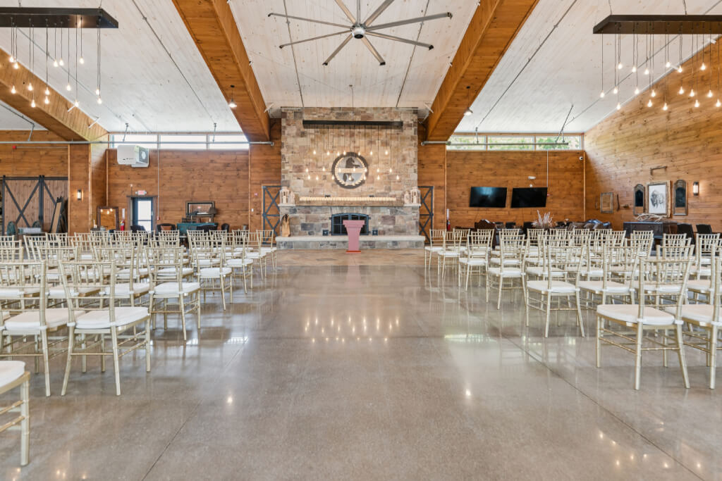 The Grand Room features rich wood-planked walls and ceilings, two stately fireplaces, and warm, ambient lighting that sets the tone for everything from romantic weddings to upscale corporate galas. Its wide-open floor plan allows for flexible layouts, easily accommodating multiple dance floors, band stages, or lounge setups—and it’s even large enough to host two events simultaneously without sacrificing comfort or style.