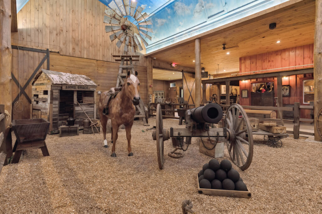 Guests are greeted by the sights and sounds of a bygone era as they stroll past recreated staples of western life—an old saloon, a sheriff’s office, a jail (perfect for playful “shotgun wedding” photos), a general store, post office, and bank. Each structure has been thoughtfully designed to feel as real and lived-in as the originals, using both authentic 19th-century artifacts and historically inspired craftsmanship.