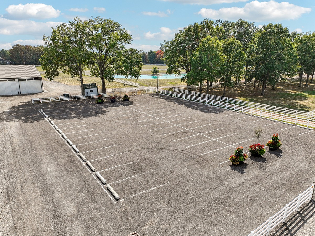 Spanning approximately 48 beautifully wooded and scenic acres, our property features two serene ponds, thousands of feet of classic white four-rail vinyl fencing, and approximately 42,000 square feet of indoor entertainment space—plus extensive outdoor areas perfect for gatherings under the open sky.