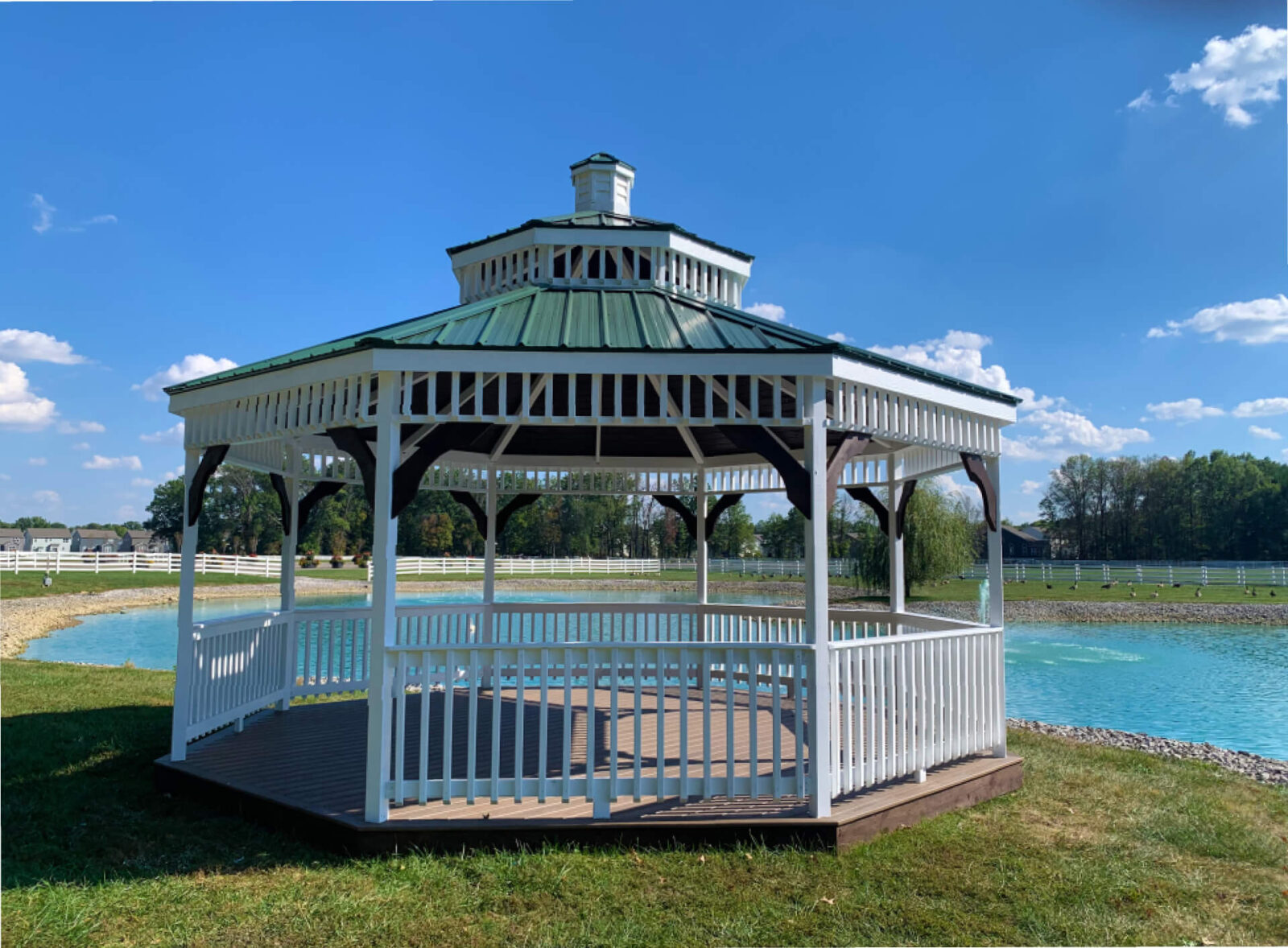 Nestled amidst the tranquil beauty of our estate is a stunning and versatile 20-foot gazebo with a multi-tiered roof and cupola, which has become a picturesque focal point of The Friesian Empire. Overlooking a serene pond and framed by our signature white four-rail fence-lined pastures, this timeless structure offers breathtaking views and endless possibilities. Designed with elegance and versatility in mind, the gazebo serves as the perfect setting for a wide variety of intimate and memorable moments. Whether you’re planning a romantic proposal, an exchange or renewal of vows, engagement photos, or even a quiet spot for peaceful reflection, the gazebo provides a naturally beautiful backdrop that effortlessly elevates the experience. From golden hour photo shoots to twilight ceremonies under the stars, this charming space brings a storybook atmosphere to your special day. Whether decorated with florals, soft draping, or left to shine in its simple, graceful form, the gazebo is a beloved feature of The Friesian Empire—inviting love, celebration, and unforgettable memories.